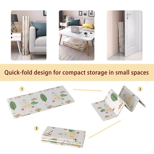 Foldable Baby Play Mat, Extra Thick Reversible Waterproof Foam Floor Mat for Crawling & Tummy Time, Non-Slip Portable Nursery Playmat with Travel Bag, Easy to Clean (150x180cm,Style 3)