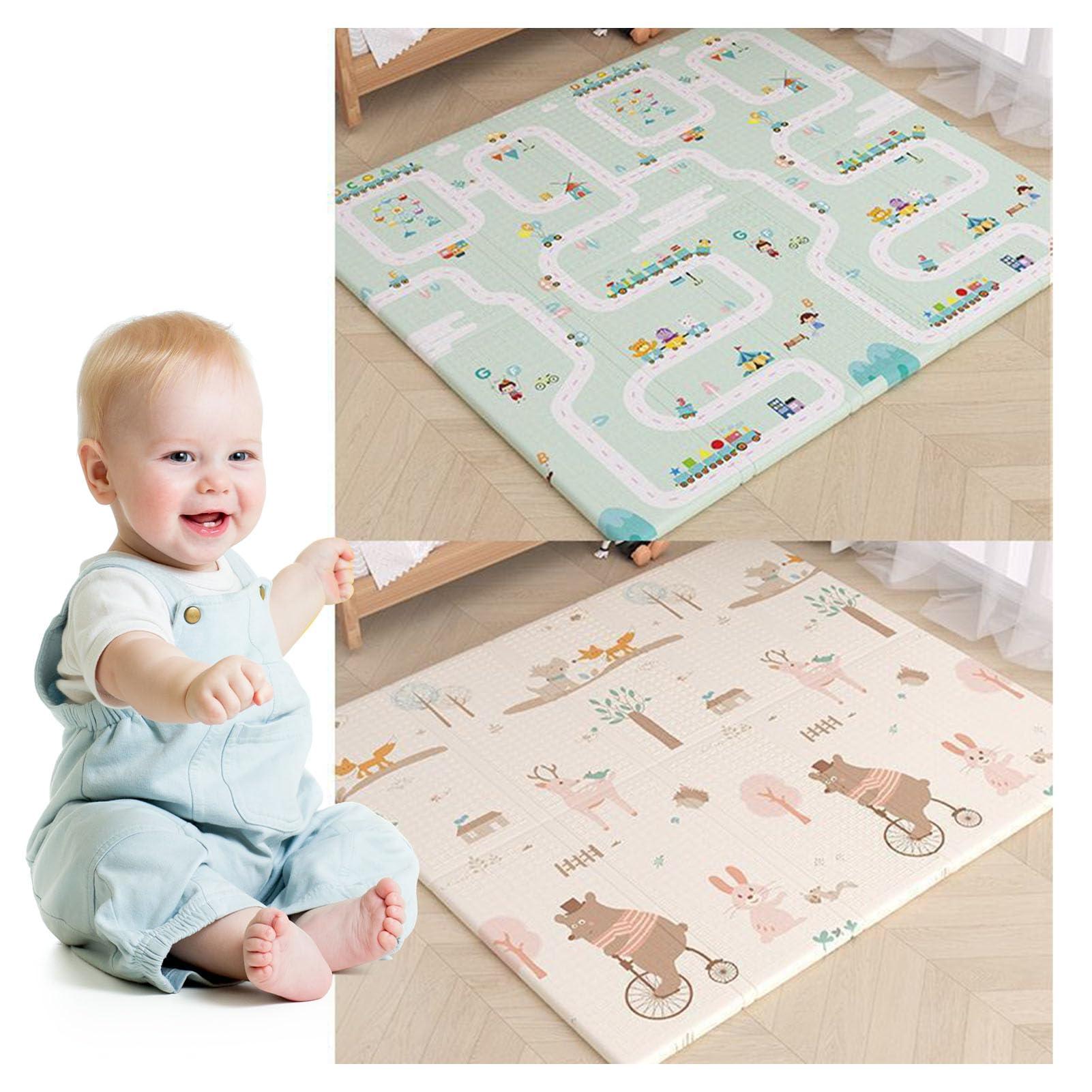 Foldable Baby Play Mat, Extra Thick Reversible Waterproof Foam Floor Mat