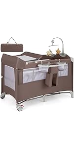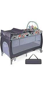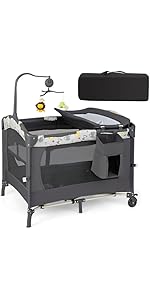 - FLEXIBLE MOBILITY: The infant cot is equipped with 4 lockable wheels for smooth and safe movement. This infant crib comes with a foldable Oxford fabric carrying bag, allowing the cot to be compactly stored in a wardrobe or car boot.