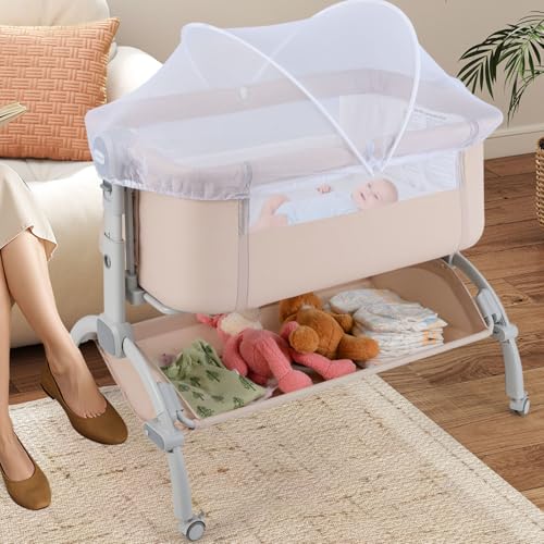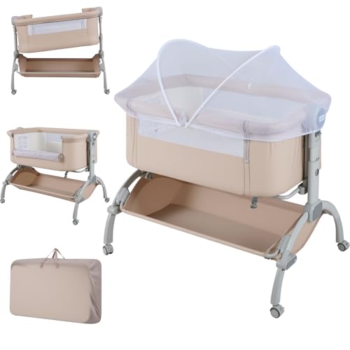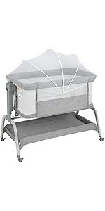 - Multi-functional & Practical Storage: The bedside sleeper can be used as an independent baby crib or placed alongside the parents' bed. This baby bedside cot features an insect-proof top mosquito net and a spacious storage basket at the bottom for storing nappies or clothing.