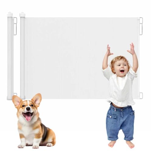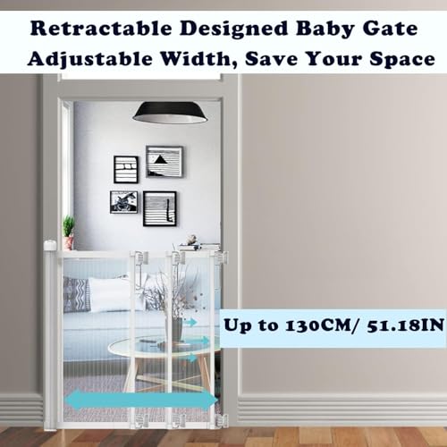 Retractable Gate, Baby & Dog Stair Gate,88cm Tall,Extends up to 130cm Wide,Child Safety Gate for Doorways, Stairs, Hallways, Indoor/Outdoor, White
