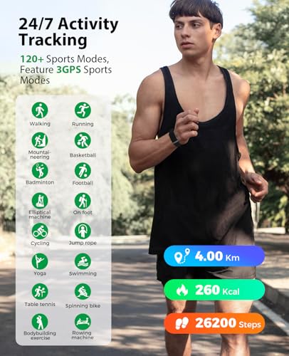 - 【120+ Sports Modes & All-Day Activity Tracking】Fitness tracker bracelet monitor your steps, distance and calories burned all the day to help you achieve your fitness goals more efficiently. Including 120 sports modes like skipping, swimming, yoga, basketball etc., and provides 3 GPS modes specifically for outdoor walking, running and cycling, you can view GPS movement trajectory on the map in real time on the APP.