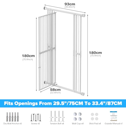 180 cm Extra Tall Pet Gate, Adjustable 70-107cm Safety Gate for Cats & Dogs