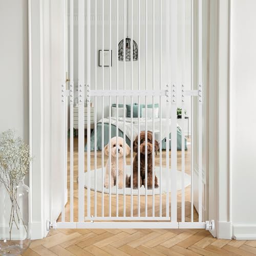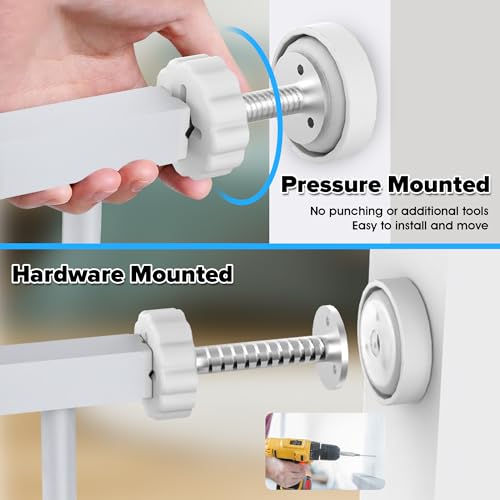 - 【Pressure-Mounted & Tool-Free Installation】No drilling or tools needed — this pressure-mounted pet gate installs quickly and securely, protecting walls while providing reliable stability. Perfect for renters or homeowners who need a tall dog gate or extra tall cat gate that’s easy to set up and adjust.