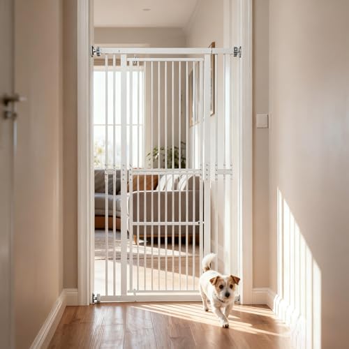 - 【Multi-Scene Use — Doorway, Hallway & Stairs】This versatile tall pet gate works in door frames, corridors, stair bottoms, or outdoor entrances, keeping pets safely contained in multiple areas. Functions as a cat gate, dog gate, stair gate, or safety gate for flexible home use.
