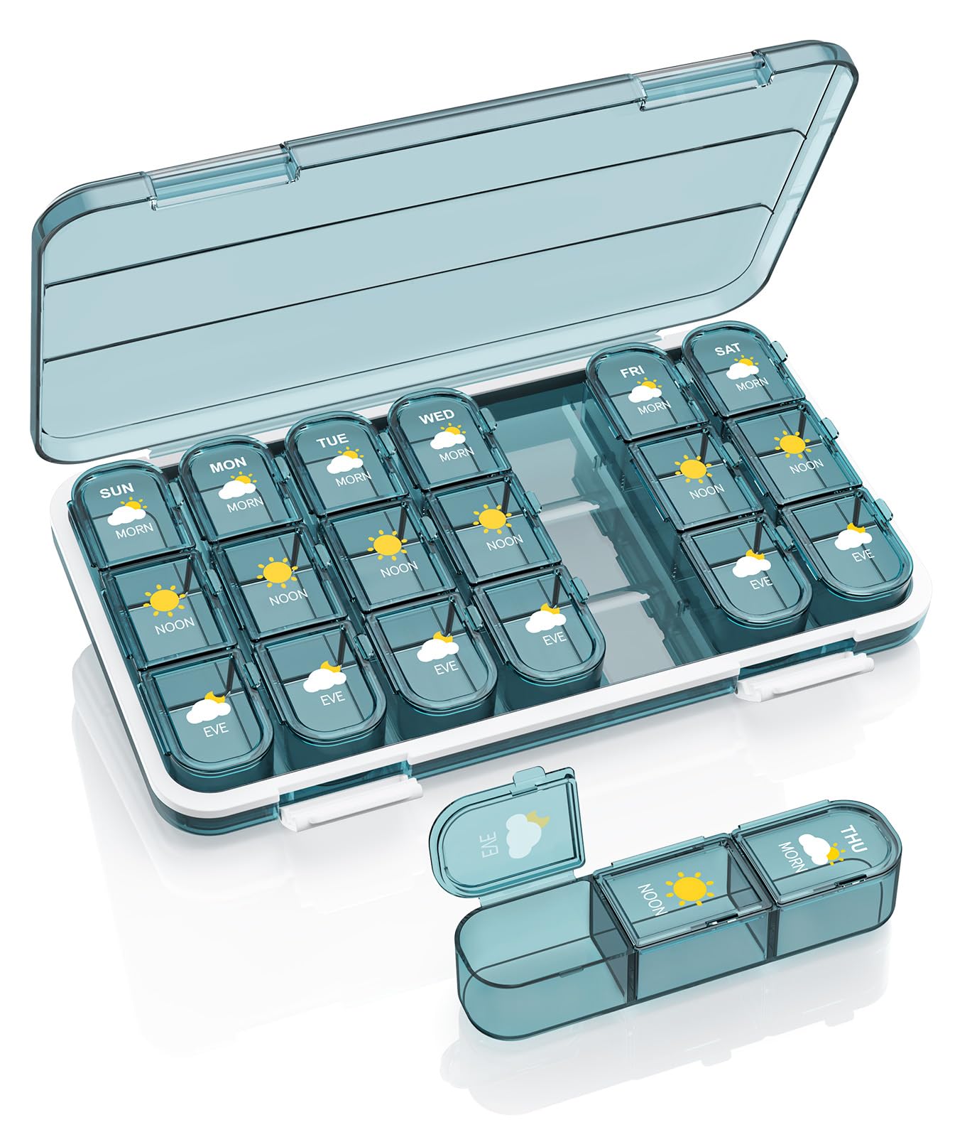 - Acedada Weekly Pill Organizer 3 Times A Day — Craving a change from the ordinary pill organizers for your medication routine? Worried about forgetting to take your pills during your absence from home? Embrace the Acedada 7 day pill organizer 3 times a day, designed to simplify your life! Fill it once a week, and enjoy the convenience and efficiency it brings to managing your medication schedule effectively
