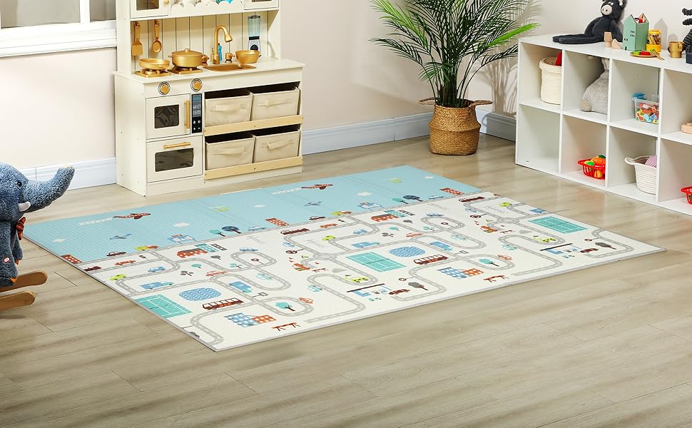 - Soft and safe: Crafted from thick XPE foam with secured stitched edging, this cushioned playmat softens falls and slips – great for crawling and taking first steps.