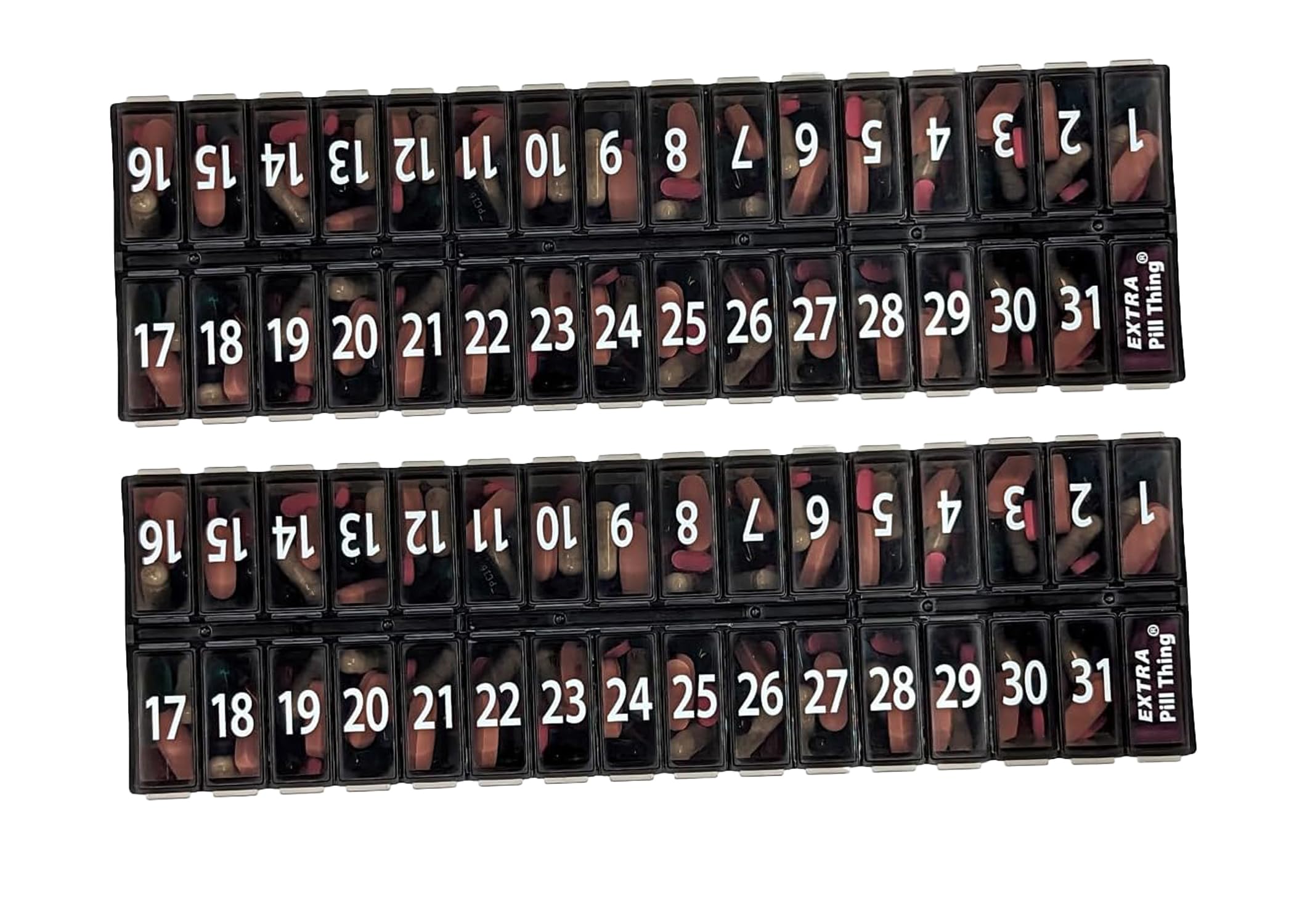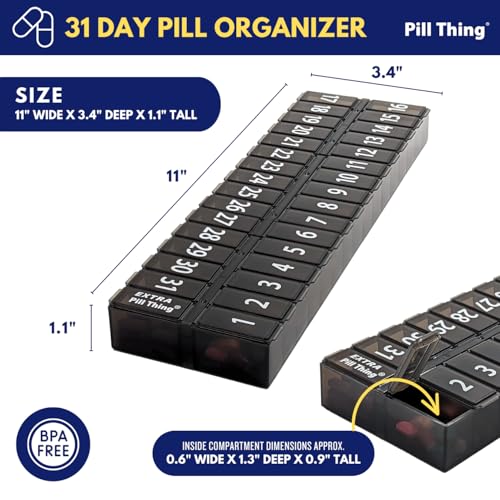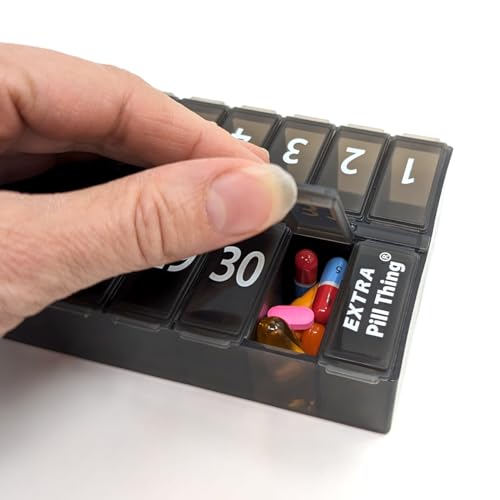 - A Month of Morning and Evening Pills Neatly Organized and Ready to Go – Keep 31 days of your medications in these monthly pill boxes plus they have a compartment for an EXTRA days worth of pills or for pills you take occasionally.