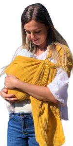 The wrap keeps the baby in an ergonomic position with the legs in "M" and the hip tilted, respecting the natural curvature of his back and preventing hip dysplasia. Rust-proof aluminium rings ensure a secure and long-lasting hold.