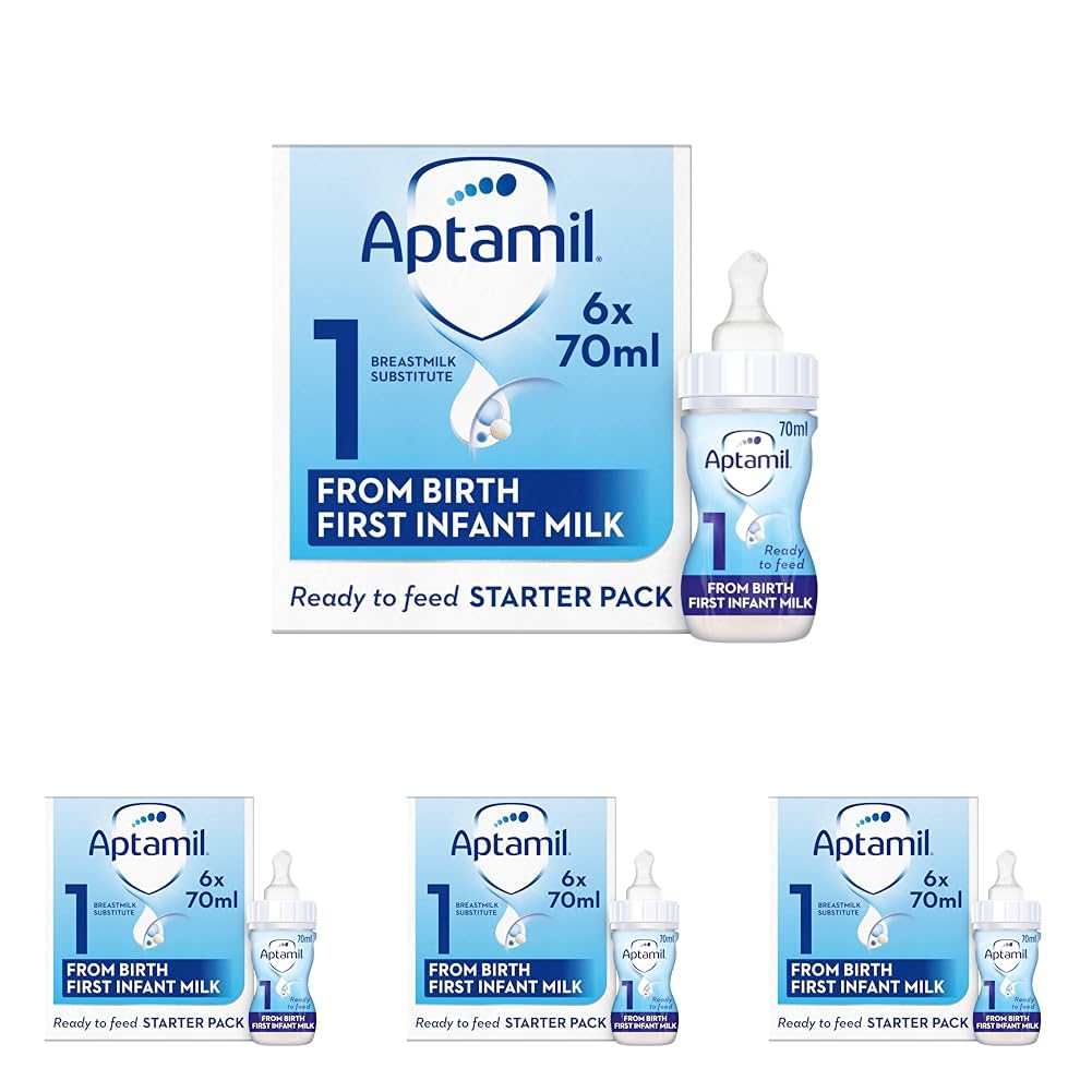 Aptamil 1 First Baby Milk Formula Starter Pack Ready to Use Liquid, from Birth, 6×70 ml (Pack of 4)