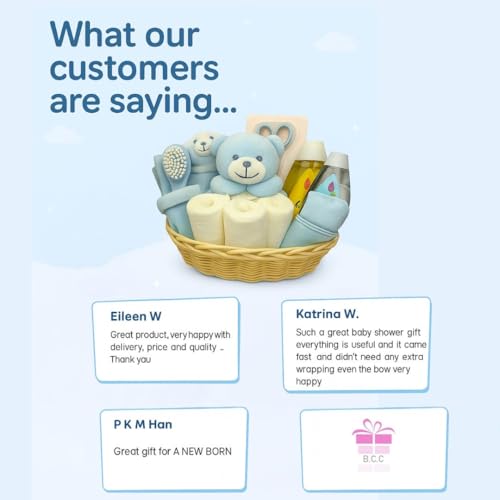 - Our Commitment to You: At B.C.C, we take pride in crafting every new baby hamper basket and new born baby gifts for baby boy set in the UK. With careful packaging, we ensure your gift arrives in perfect condition. If any issues arise, our team will resolve them quickly and efficiently. All our soft toys meet European Safety Standards (EN71) and are safe for newborns from birth, giving you peace of mind with every purchase.