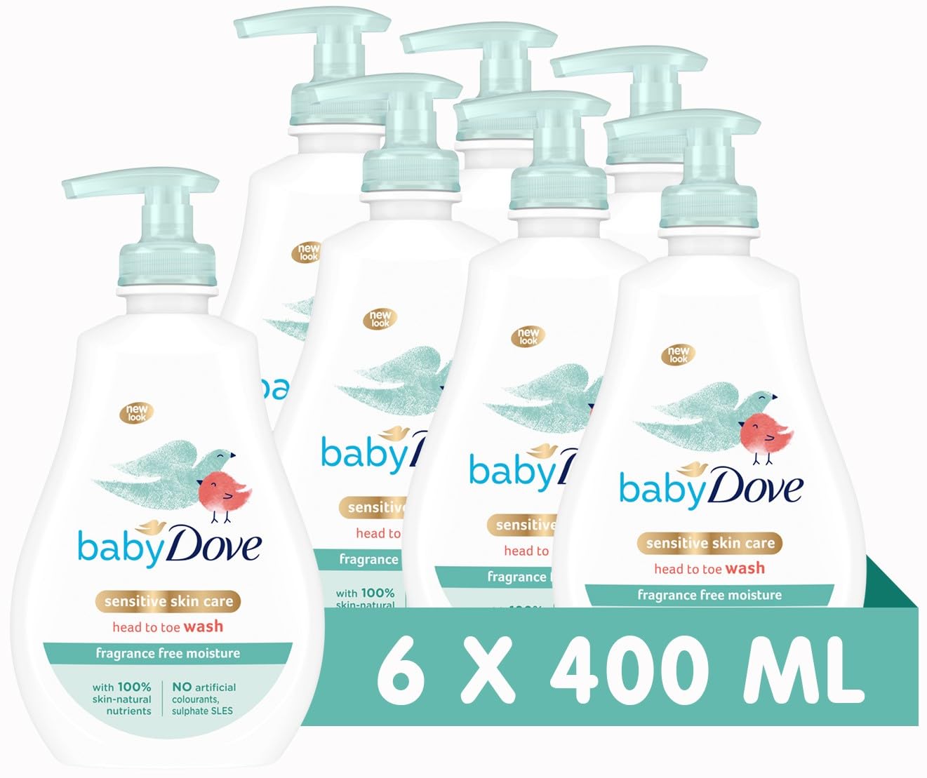 - PRODUCT DETAILS: This set includes six 400ml bottles of Baby Dove Fragrance-Free Moisture Wash. The product is formulated for use on babies and young children, offering a cleansing option for daily hygiene routines.