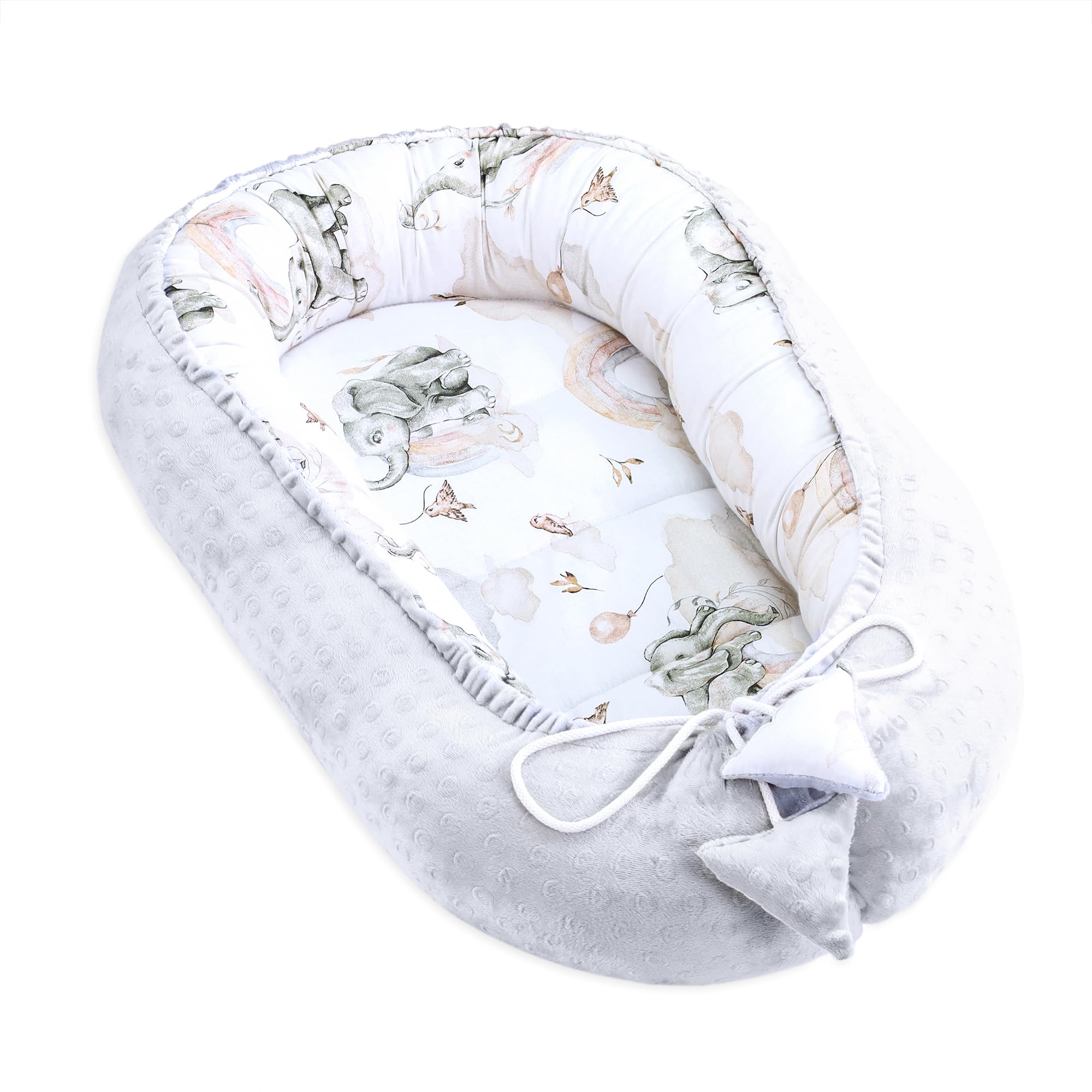 Baby Nest – Baby Nest for Newborns Minky Baby Nest for Crib Versatile Portable Nest Cuddle Nest Accessory for Crib Warm Winter Cocoon Elephant Light Grey