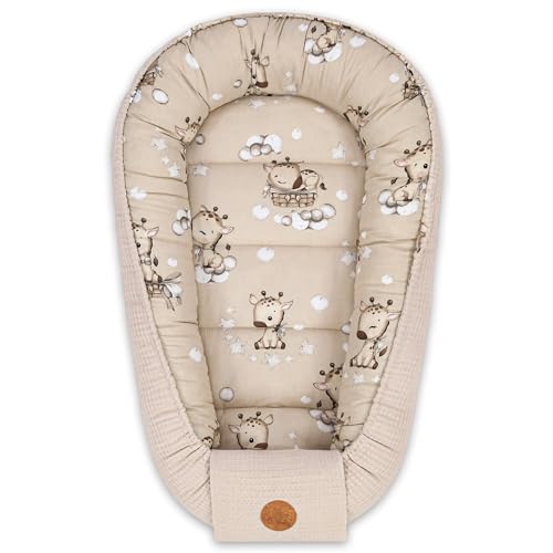 Baby Nest Pod Bassinet Lounger – 90×50 cm Sleep Pod Newborn 0-36 Months Portable Co Sleeper Travel Furniture Cozy Snuggle Breathable Cotton Wafel Giraffes