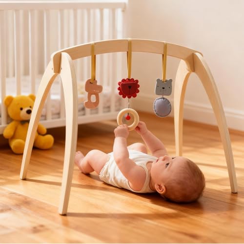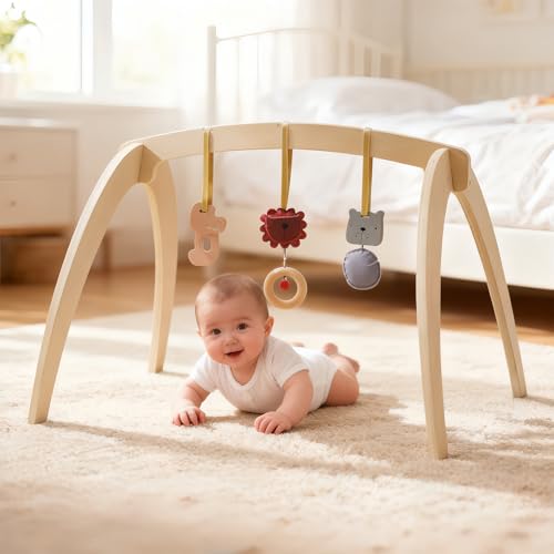 Baby Play Gym | Wooden Learning Toys with Rattle – Kids Play Gym with Detachable Sensory Toys | for Toddler Indoor Outdoor Home Bedroom Nursery Living Room Daily Shower Birthday