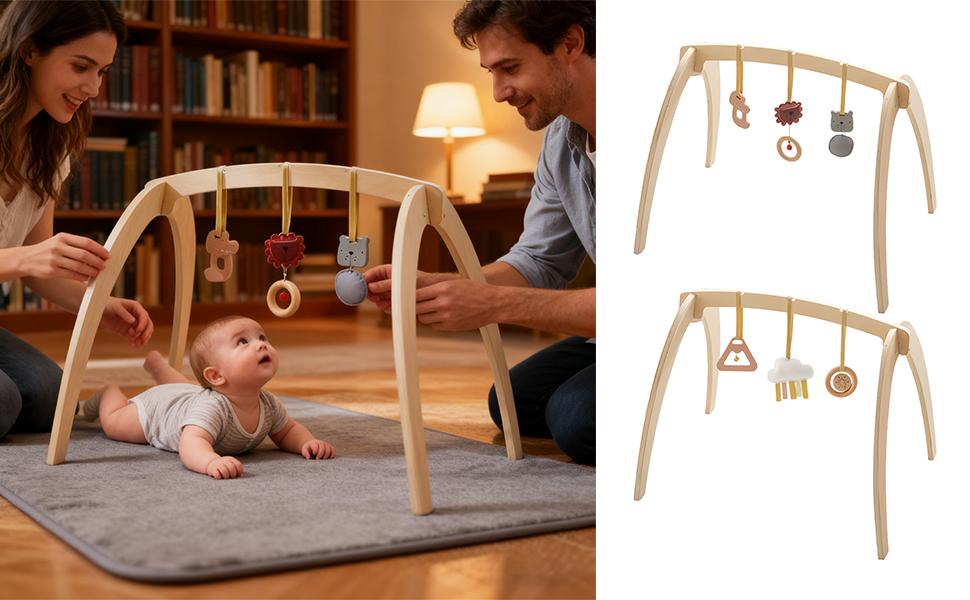 Baby Play Gym | Wooden Learning Toys with Rattle – Kids Play Gym with Detachable