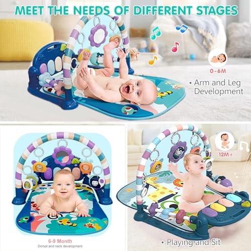 - 【6 Different Modes of Our Baby Newborn Infant Play Mat Gym】Lying, Sitting, Tummy Time, Kicking, Playing, and Take-Along. The unique musical piano keys with lights attract the baby to touch, emitting beautiful sounds that stimulate the baby's curiosity.