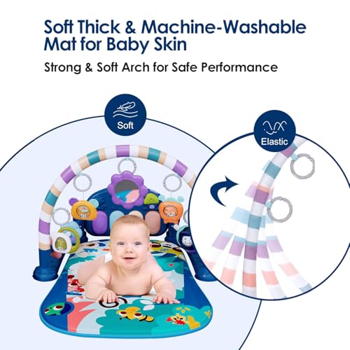 Baby Play Mat Baby Gym,Funny Play Piano Tummy Time Baby Activity Mat with 5 Infant Sensory Baby Toys, Music and Lights Boy & Girl Gifts for Newborn Baby 0 to 3 6 9 12 Months (Blue Tiger)