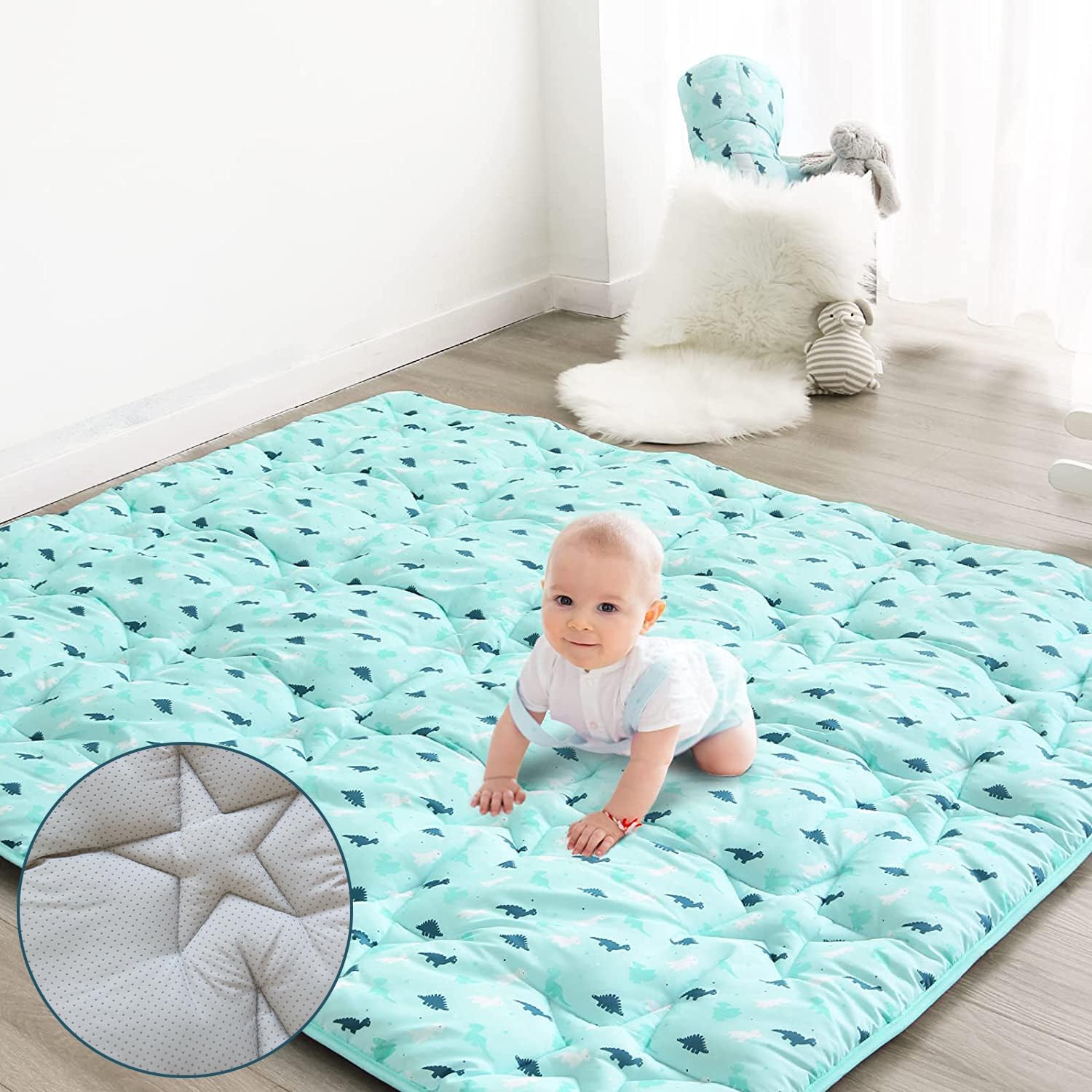 - Thicker & Soft: This baby play mat with thicker, soft padding makes it perfect for your baby to crawl around. With the cute blue dinosaur pattern and ultra soft microfiber, we ensure that your little one will love this baby floor mat.