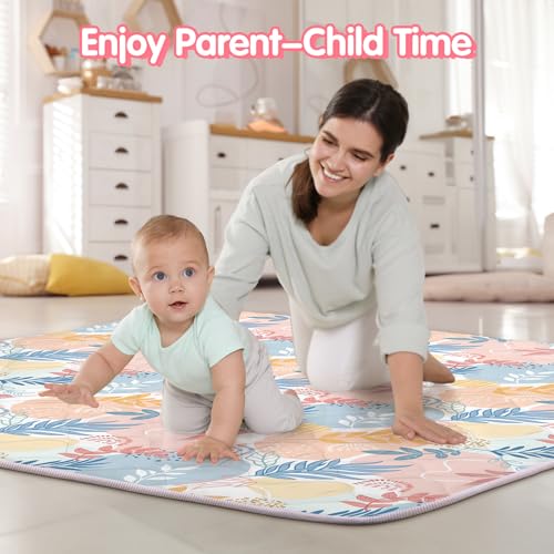 - High-quality & Easy to Clean: Our baby play mat is designed with your little one’s comfort and safety in mind. The top layer is made of soft and high-quality polyester fiber, while the interior features thickened premium foam for extra cushioning—helping to protect your baby from bumps and falls. Plus, it’s machine washable for hassle-free cleaning, which helps solve your trouble of cleaning stains.