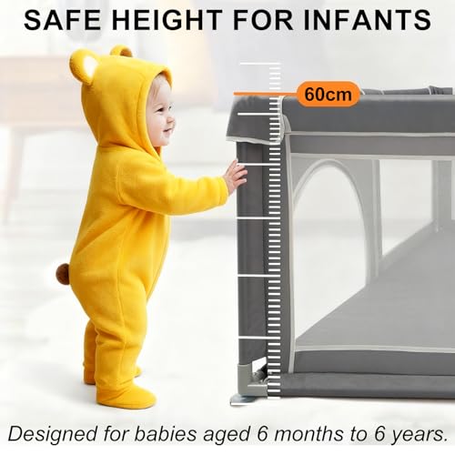 - Breathable Mesh Panels: Features soft, transparent mesh sides that allow for 360° visibility and airflow, so you can always keep an eye on your child. while an Added Storage Pocket Holds Diapers and Essentials within Easy Reach.