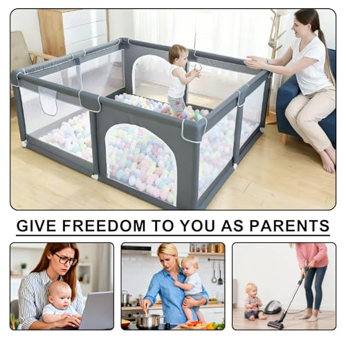 - Parents' free zone: For parents who need to do housework, our large playpen for babies and toddlers provides a safe playground! It helps children explore the world, play, learn to move on their own, and stay away from dangerous areas or getting lost. Meanwhile, parents can free their hands to focus on their own tasks.
