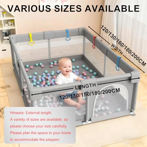 Baby Playpen, Sturdy Playpen for Baby and Toddlers, Toddler Fence – Breathable Mesh,Play Pen for Baby and Toddlers,Compact and Strong, Including 30 Ocean Balls y 4 Pull Rings,Dark Gray,120x160x60cm