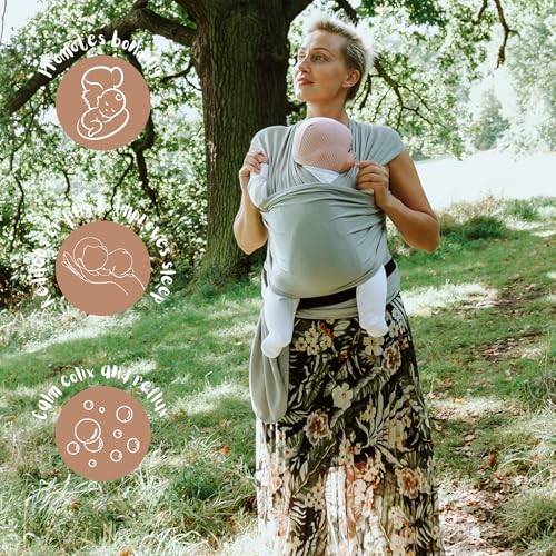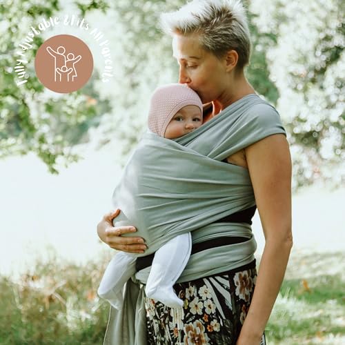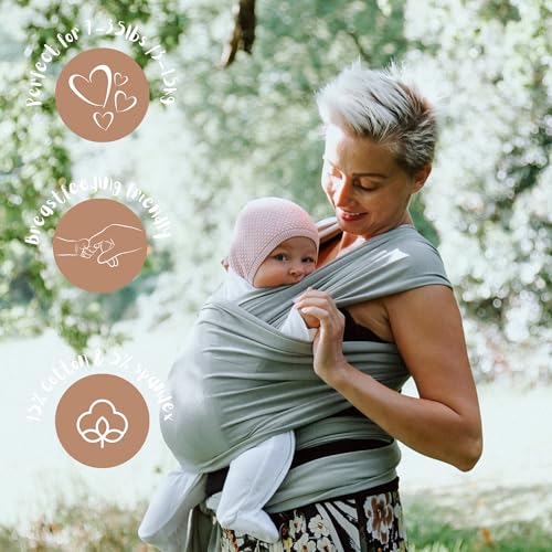 Baby Sling Wrap Newborn to Toddler Carrier 7-35lb – Soft Stretchy Baby Wrap Sling – Safety Tested – Hands-Free Baby Wrap Carrier – Newborn Sling (Sage)