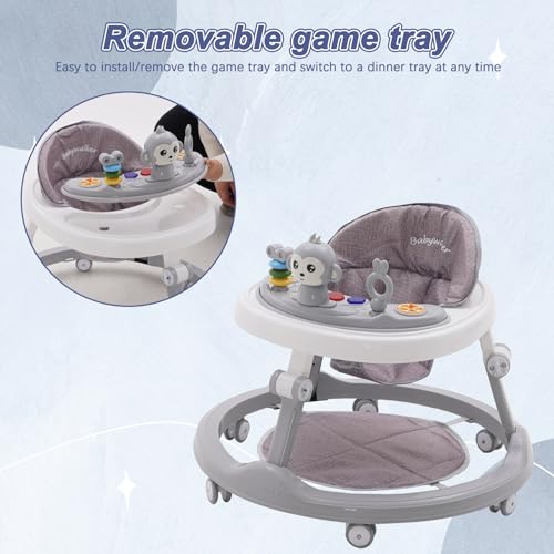- Removable Music Plate:The walker comes with a detachable mobile music plate, which can turn on the baby's early education mode with one button. The comfortable and non-glaring flashing effect, pleasant children's music and a cute decoration can attract the child's attention and exercise the child's finger coordination ability, and improve the child's sensitivity to sound and light
