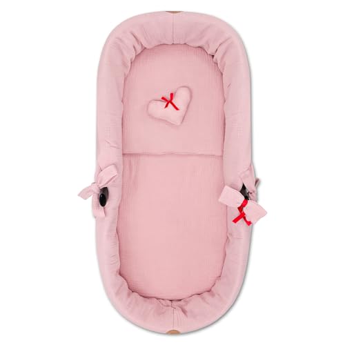 Bassinet Surround Muslin – Baby Crib Accessory for Strollers and Buggies Bassinet Insert Stroller Accessory 3-Piece Set with Pillow and Gondola Insert Pink