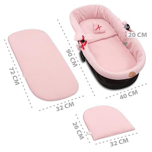 Bassinet Surround Muslin – Baby Crib Accessory for Strollers and Buggies Bassinet Insert Stroller Accessory 3-Piece Set with Pillow and Gondola Insert Pink