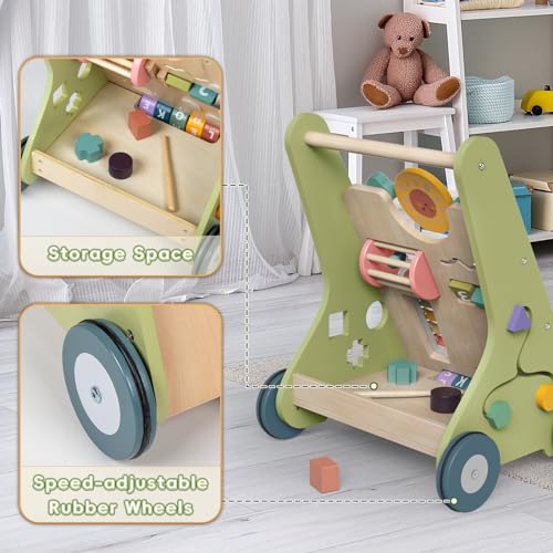 Bautia Wooden Baby Walker for 1 2 Year Old Boys Girls Push Along Toy, 10 in 1