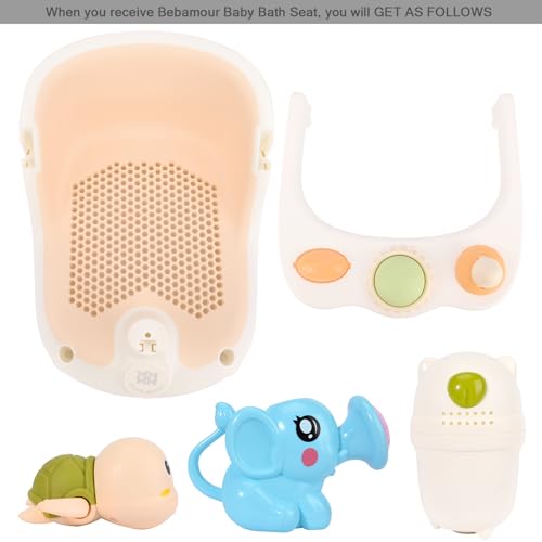 - [UPGRAED DESIGNED] Bebamour Baby Bath Seat includes Baby Water Jug, Elephant Toy, Turtle Swim Toy, All Round Baby Bath Seat