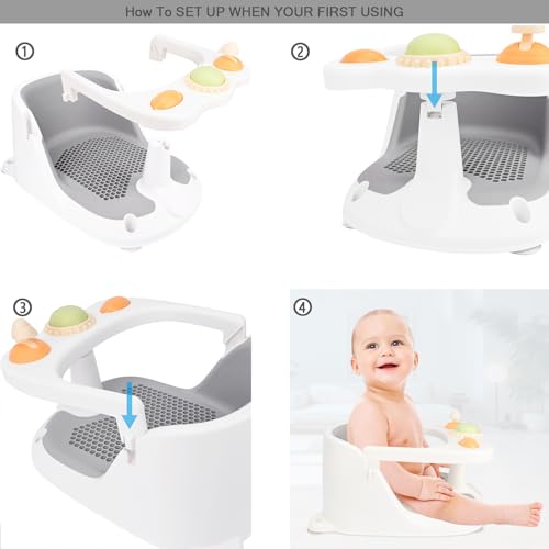 Bebamour Baby Bath Seat 6 Months+ Child Bath Tub Non-Slip Bath Chair with Toys