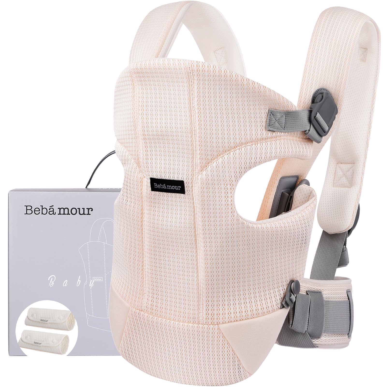 Bebamour Baby Carrier Front and Back Baby Carrier with 2 Shoulder Bibs, Beige