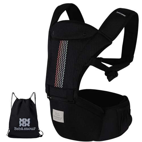 Bebamour Baby Carrier Newborn to Toddler Baby Carrier Hipseat 0-36Months with Head Hood, 3 PCS Teething Pads, Waist Extender, Black Pro