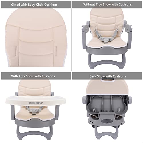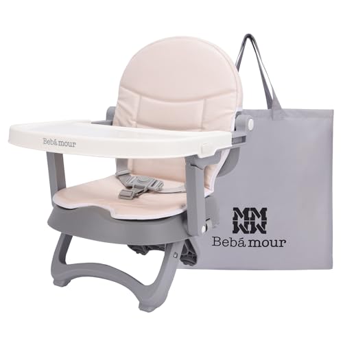 Bebamour Baby Chair Booster Seat with Tray Sit Me Up Baby Chair for Eating Portable, Travel, with Beige Padding