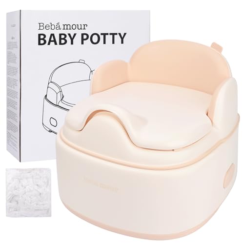 Bebamour Potty Training Toilet 3 in 1 Multi-Functional Potty Seat Detachable Baby Potty Step Stool Anti-Slip Stable Potty Training Toilet with 100 Pack Trash Bags for Baby Toddler Kids