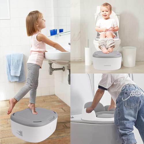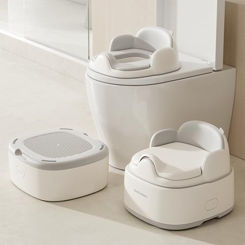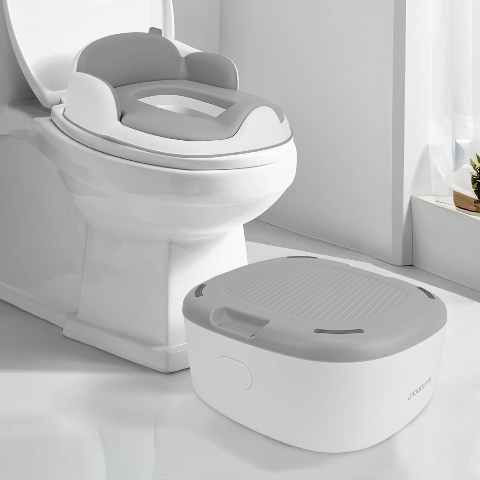 Bebamour Toddler Toilet Seat with Step, 100PCS Liner Bags, Baby Potty Tranining Seats Portable Potty for Toddlers Travel Potty for Boys and Girls, Grey