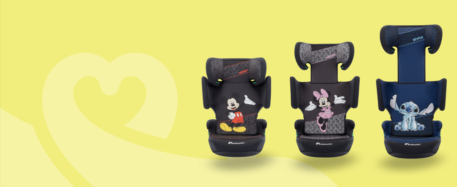 Bring the wonder of Disney to every ride! Our new range of Bebeconfort car seats features Mickey, Minnie, Stitch, and the enchanting world of Frozen. Each one adds a touch of Disney magic to all your family travels — so buckle up and let the fun begin! This lightweight booster seat is suitable for children from approximately 3.5 years old up to approximately 12 years old, for children with a height between 100 and 150cm. This booster seat can easily be installed using the seat belts of your car. Comfort is, next to safety, one of the main priorities for you as a parent when transporting your child. Therefore, Road Safe i-Size has superior cushioning, an extra padded seat and a cushioned headrest which can easily be adjusted to 14 different positions with one hand. RoadSafe i-Size weighs less than 3kg and thanks to the unique compact foldable design of the seat, you can easily transport it and install it in different cars with the seat belts of your car. Let the adventures unfold with the Bebeconfort RoadSafe i-Size booster seat.
