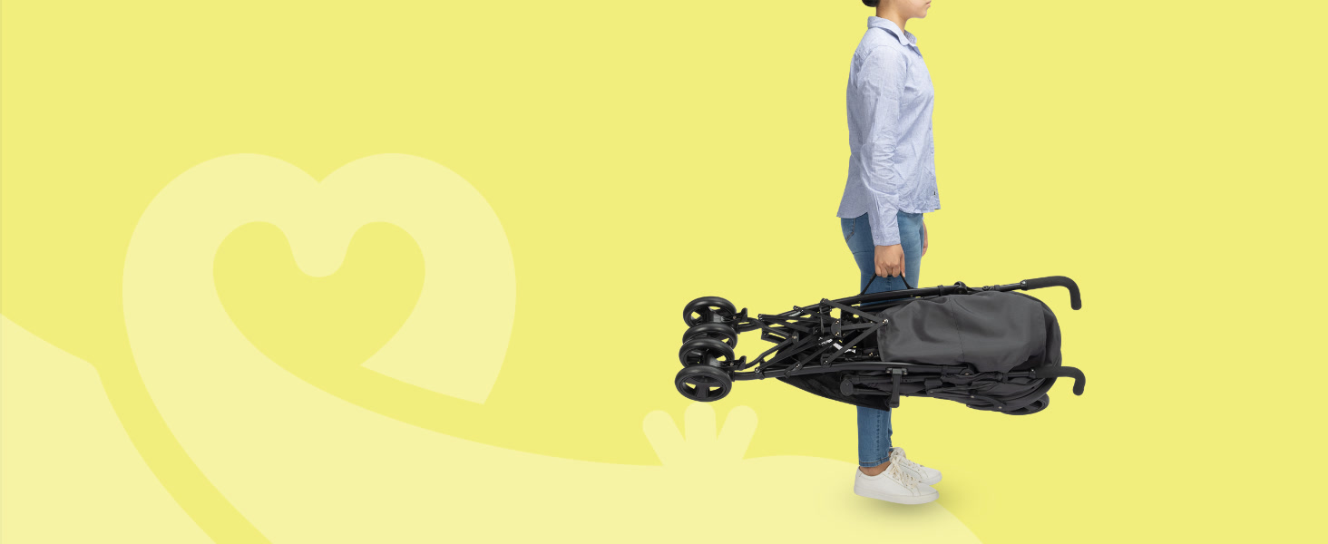 - ONE HAND FOLD PUSHCHAIR: easily fold the compact stroller (L43 x W29 x H106 cm) with simply one hand; its folding system design makes it ideal to take with you, and it also offers a handy carry strap that makes carrying easier