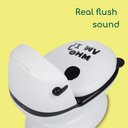 - REAL FLUSH SOUND: teaching your little one to use the toilet will be an easier task when he realises how entertaining it can be to flush his own toilet like a grown-up