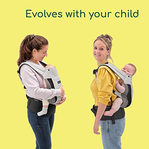 - The carrier evolves to allow you to carry the baby facing you (3.5-15 kg), on the hip (3.5-15 kg) or on the back (6-15 kg)