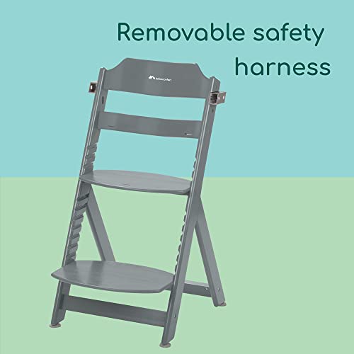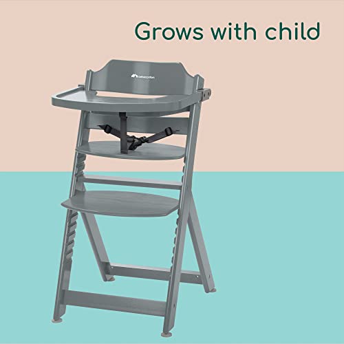Bebeconfort Timba Evolutive Wooden Highchair, 6 Months – 10 Years, Up to 30 kg, Baby High Chair, Removable Tray, Adjustable Seat & Footrest, 3-point Safety Harness, Warm Grey