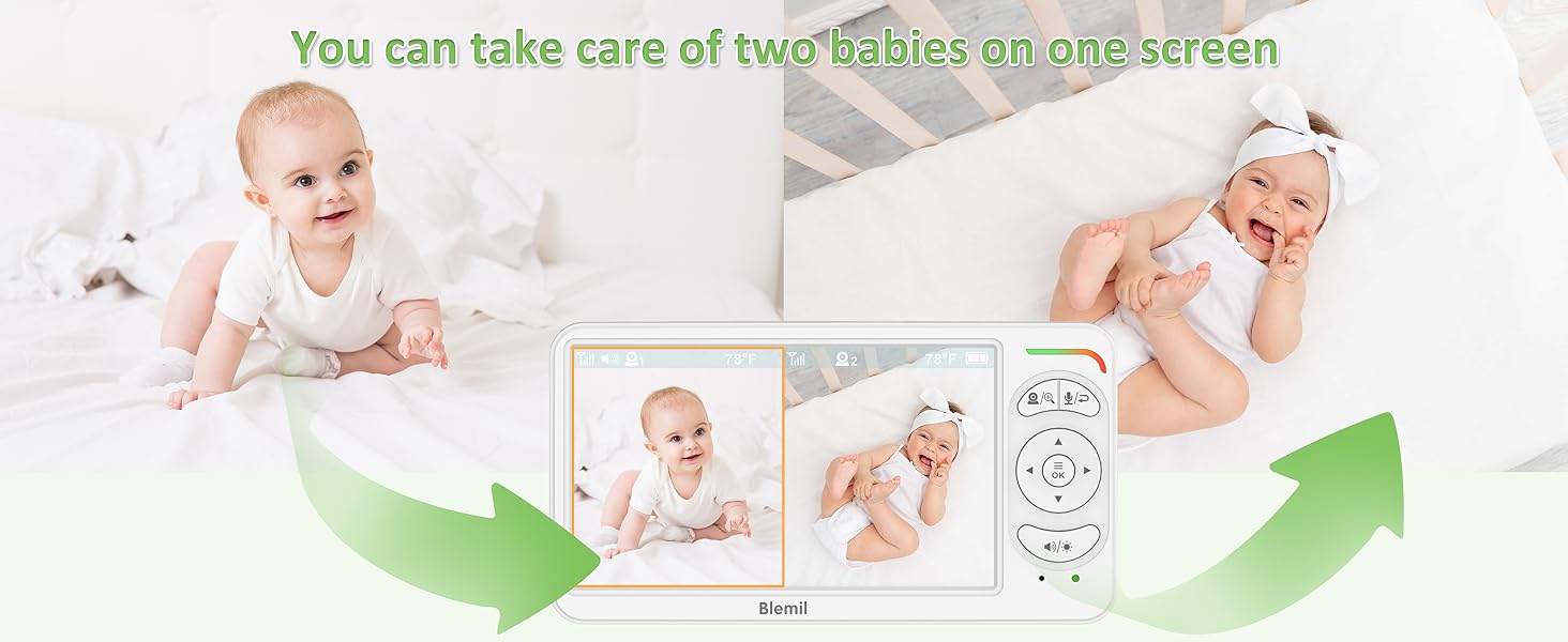 Blemil Baby monitor, Video Baby Monitor with 2 Cameras and Audio, 6 IPS Large