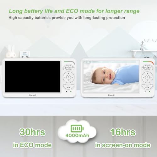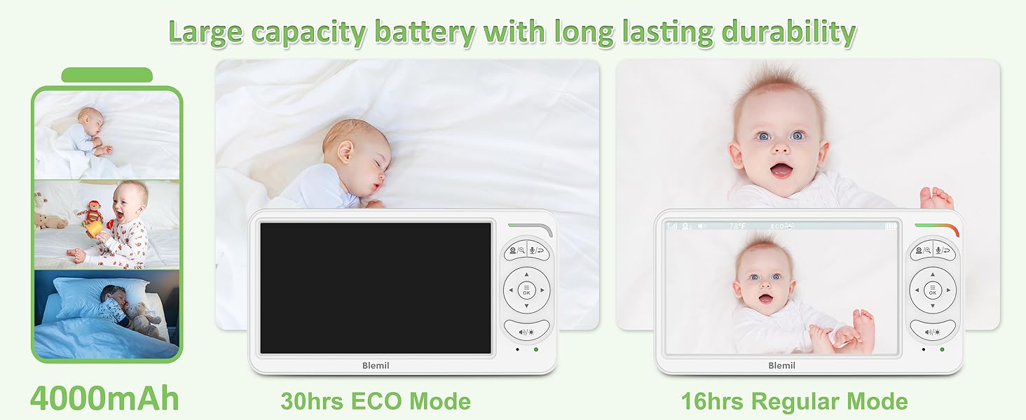 - 【High lifespan battery】 Baby monitor with camera and audio has an ultra long standby time and a capacity of 4000mAh. It will last longer when used in ECO mode.