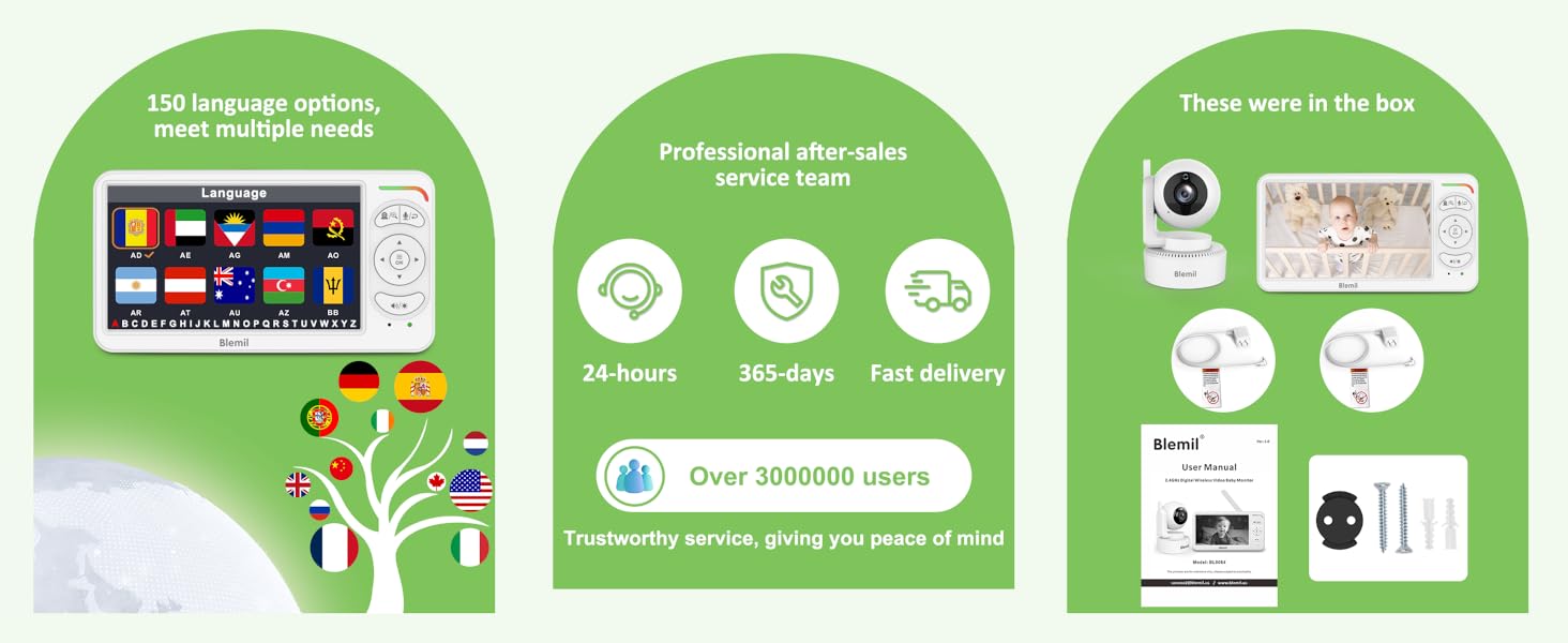 - Guarding without borders: Language barrier free, international experience. No matter where you are, our baby monitor can provide you with unlimited language support. Up to 150 language interfaces, making it easy for families around the world to use and communicate without barriers.