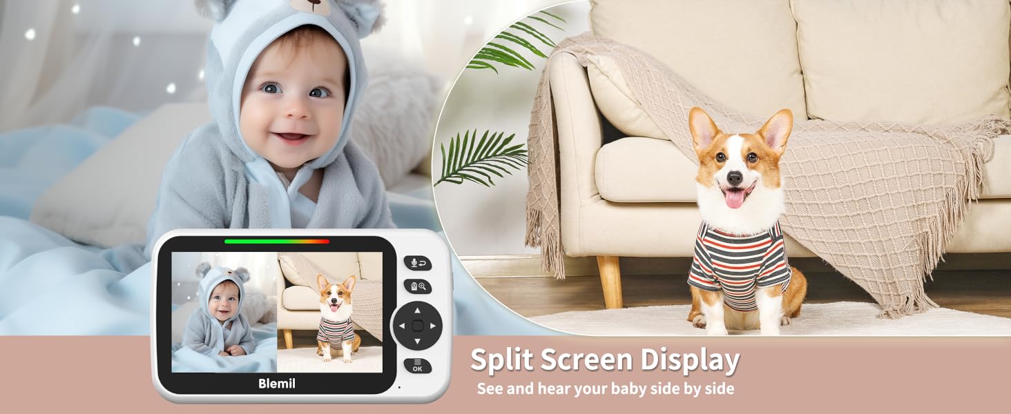 Blemil Upgrade Baby Monitor with 30-Hour Battery, 5″ Large Split-Screen Video