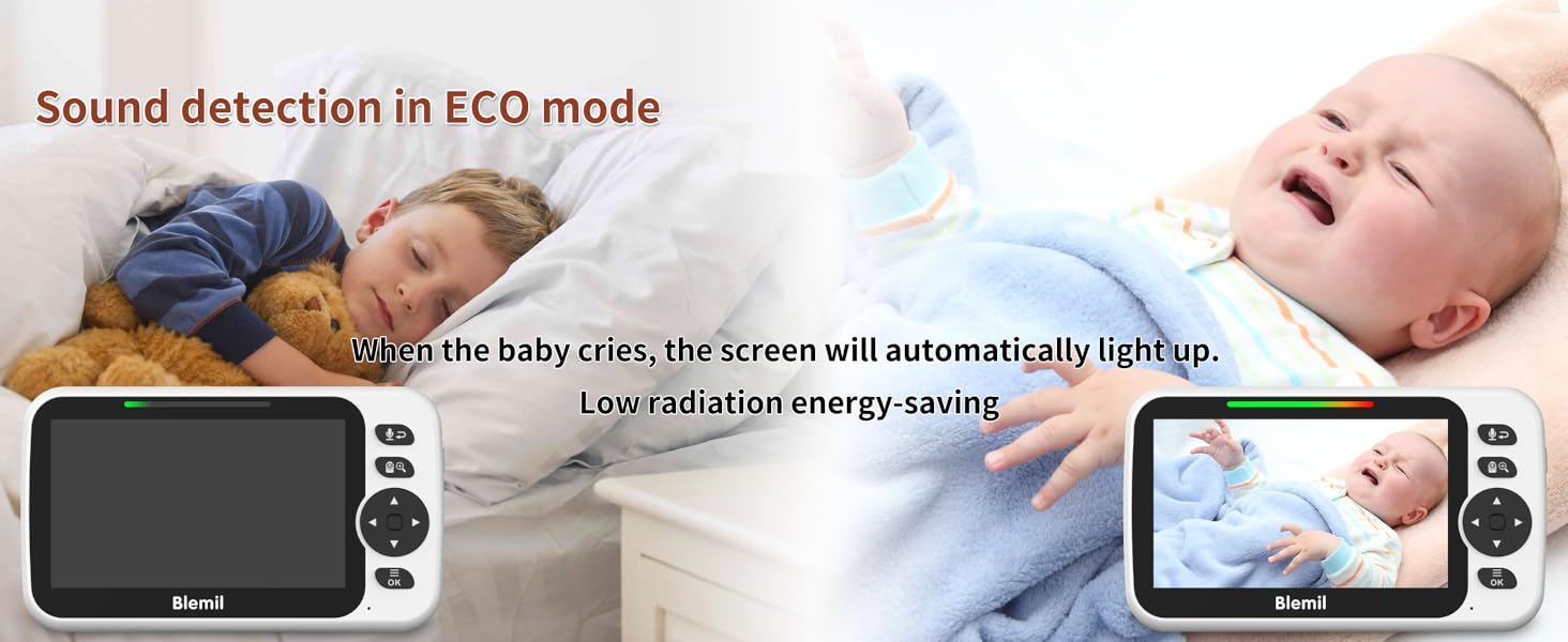 Hello dear, In ECO mode, the screen of the baby camera will sleep to save power. And when the baby suddenly wakes up and cries, the parent side will open the working mode to remind you in time.