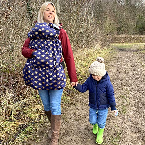 BundleBean – Babywearing All-Weather Waterproof Sling and Baby Carrier Cover (Gold Bees) – Rain Cover with Fleece Lining, Universal Fit, Fits Front & Back Carriers, Protection from Rain & Wind